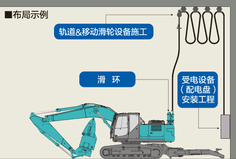 在配重上安裝專(zhuān)門(mén)用于引入外部電源的滑環(huán),機(jī)器無(wú)論向什么方向旋轉(zhuǎn)都不會(huì)發(fā)生電纜扭纏,